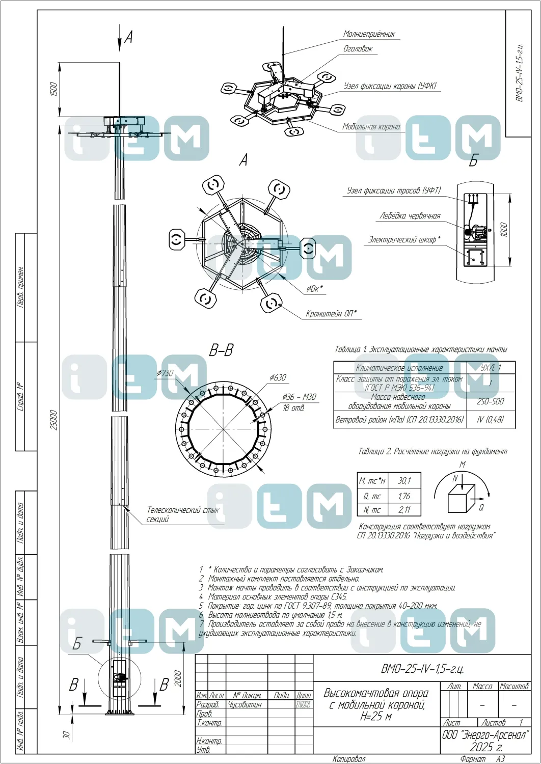 Особенности мачты ВМО-25-520/220 (МГФ-25-М)