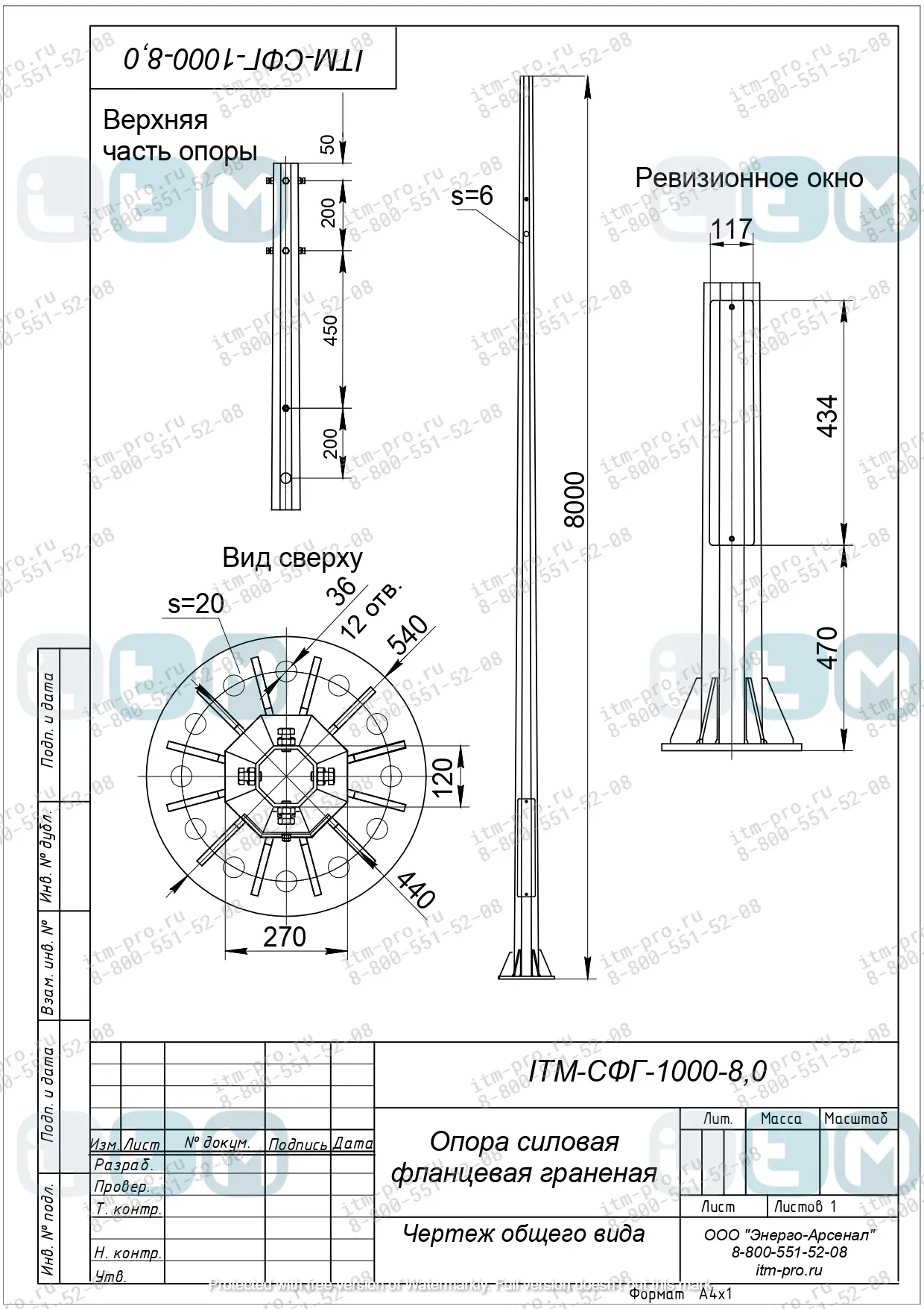 Чертеж опоры СФГ-1000-8.0