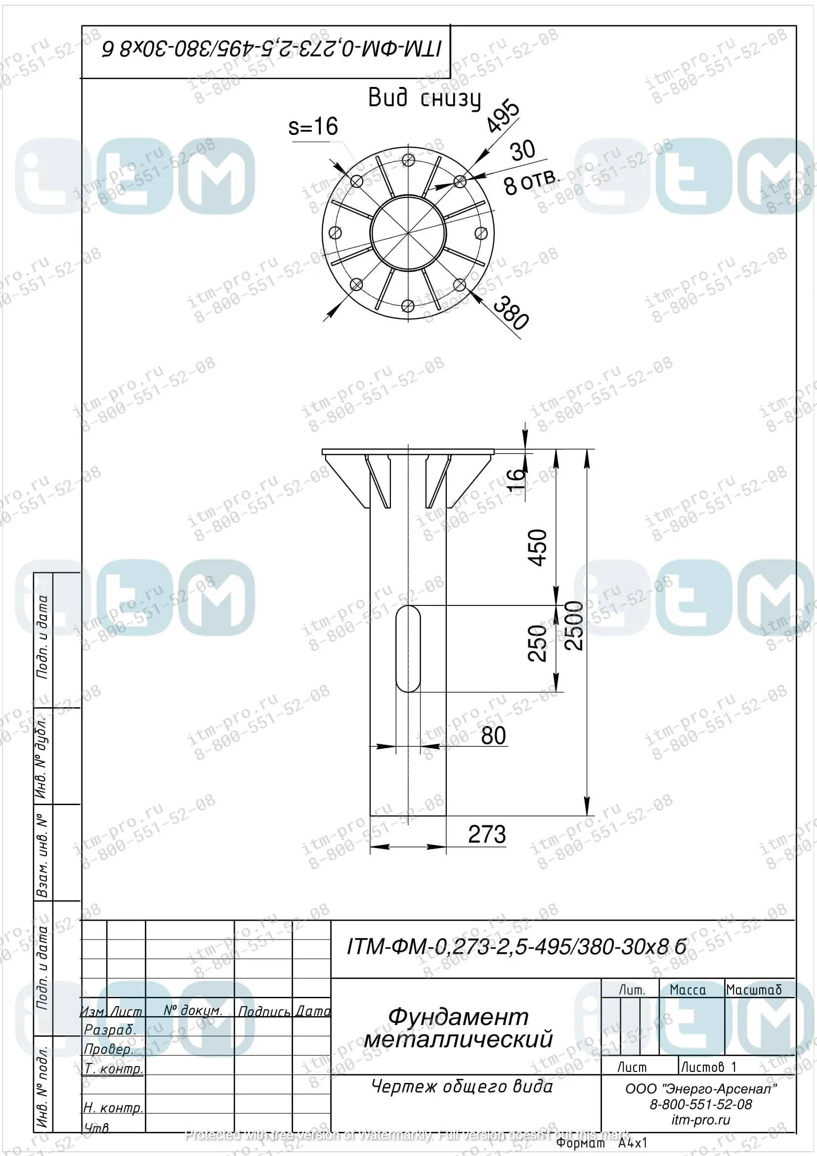 Характеристики закладных деталей фундамента ЗДФ-0,273-2,5-495/380-30х8 б